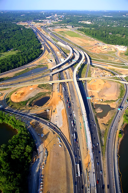 The I-95/I-495 Capital Beltway runs lower left to top, Hunting Creek is just to the right of the Beltway, the Potomac River is in the upper part of the photo, the U.S. Route 1 Interchange construction is in the canter of the photo, and the Woodrow Wilson Bridge is in the upper center of the photo. Virginia is on this side of the Potomac River, and Maryland is on the opposite side. The I-95/I-495 Capital Beltway runs lower left to top, Hunting Creek is just to the right of the Beltway, the Potomac River is in the upper part of the photo, the U.S. Route 1 Interchange construction is in the canter of the photo, and the Woodrow Wilson Bridge is in the upper center of the photo. Virginia is on this side of the Potomac River, and Maryland is on the opposite side. The I-95/I-495 Capital Beltway runs lower left to top, Hunting Creek is just to the right of the Beltway, the Potomac River is in the upper part of the photo, the U.S. Route 1 Interchange construction is in the canter of the photo, and the Woodrow Wilson Bridge is in the upper center of the photo. Virginia is on this side of the Potomac River, and Maryland is on the opposite side. The I-95/I-495 Capital Beltway runs lower left to upper right, Hunting Creek is just to the right of the Beltway, the Potomac River is in the upper part of the photo, the U.S. Route 1 Interchange construction is in the canter of the photo, and the Woodrow Wilson Bridge is in the upper right of the photo. Virginia is on this side of the Potomac River, and Maryland is on the opposite side. The downward curving elevated ramp at the middle of the photo is the newly opened flyover ramp from northbound US-1 to the Beltway Inner Loop (toward Springfield), and this ramp opened to traffic on May 6, 2007.